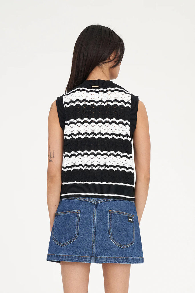 HUFFER - ZIGGY STRIPE VEST - BLACK/WHITE