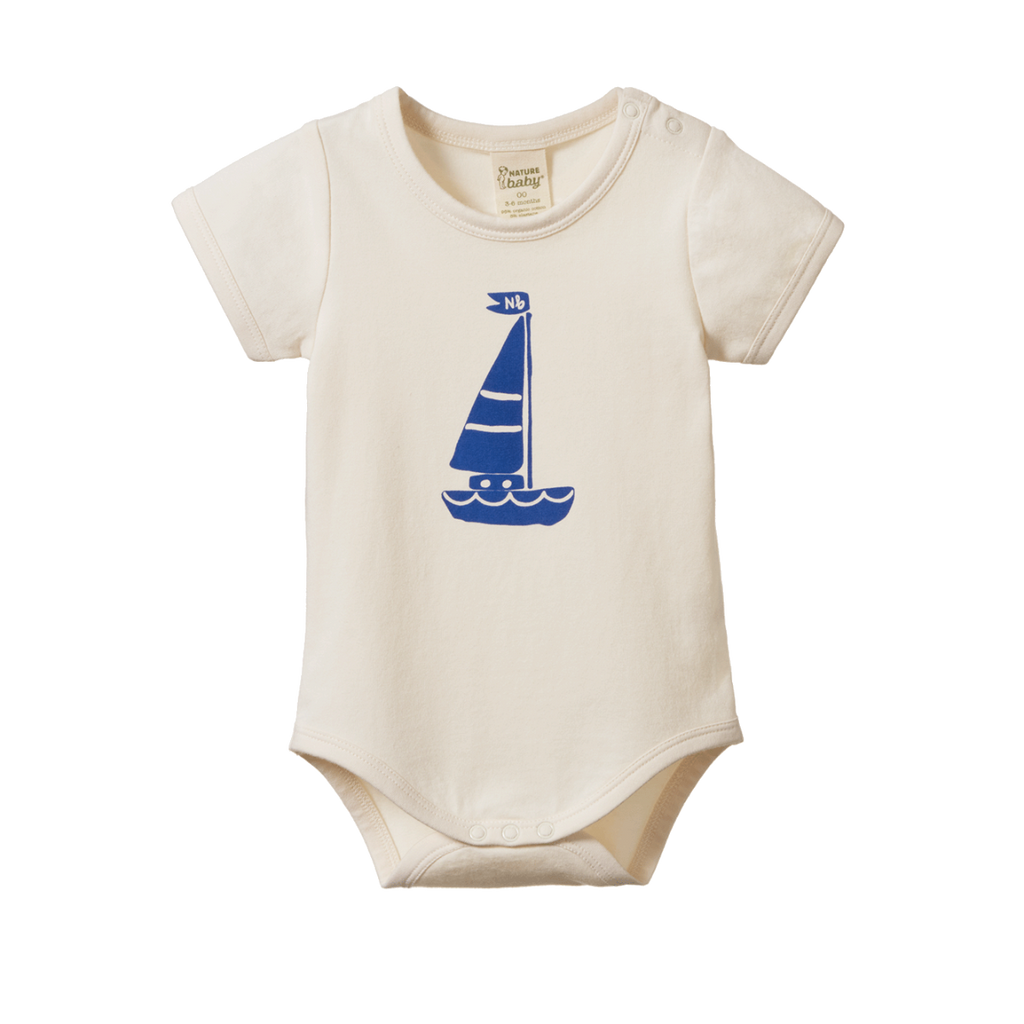 Nature Baby - Stretch Jersey S/S Bodysuit - SAIL BOAT PRINT