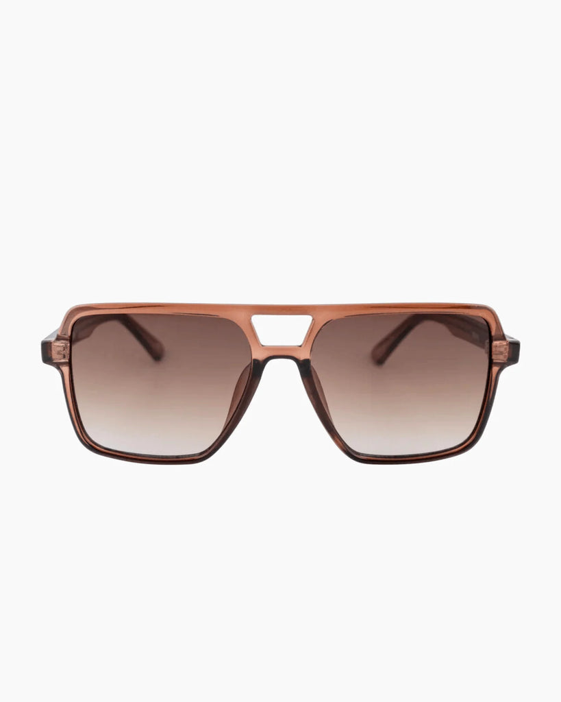 Zoya oversized transparent maple aviator sunglasses with brown fade lens by Otra—bold UV protection and standout style for sunny days. The Zoya Sunglasses by Otra channel bold energy with a soft 70s twist—perfect for sunny afternoons in Auckland or breezy road trips through Central Otago. The transparent maple frame and brown fade lens add a warm, retro-luxe edge to everything from wide-leg denim to floaty linen dresses.